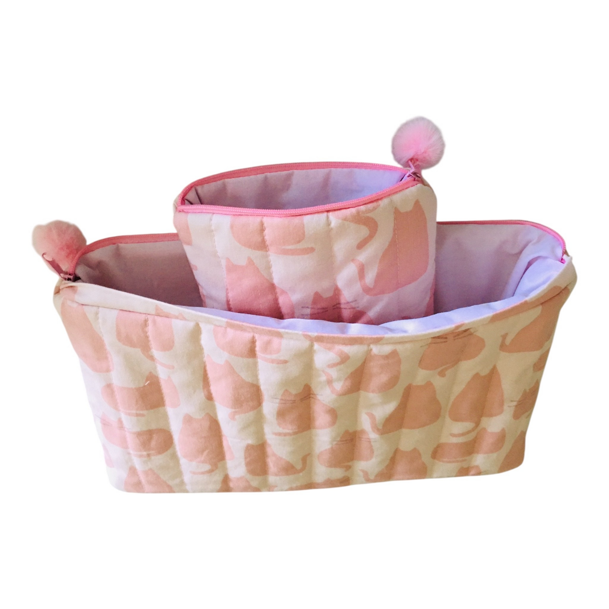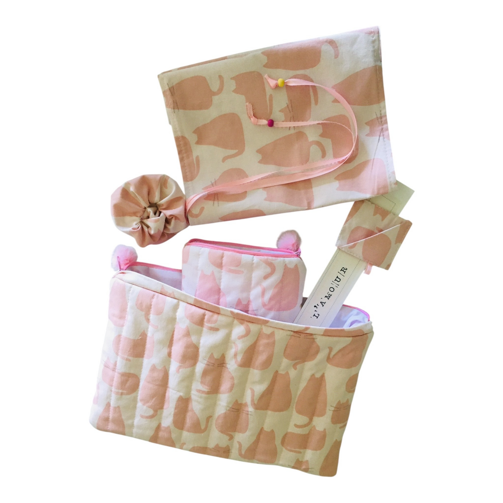 This delicately matched pink cat set is designed to combine charm, utility and everyday comfort.