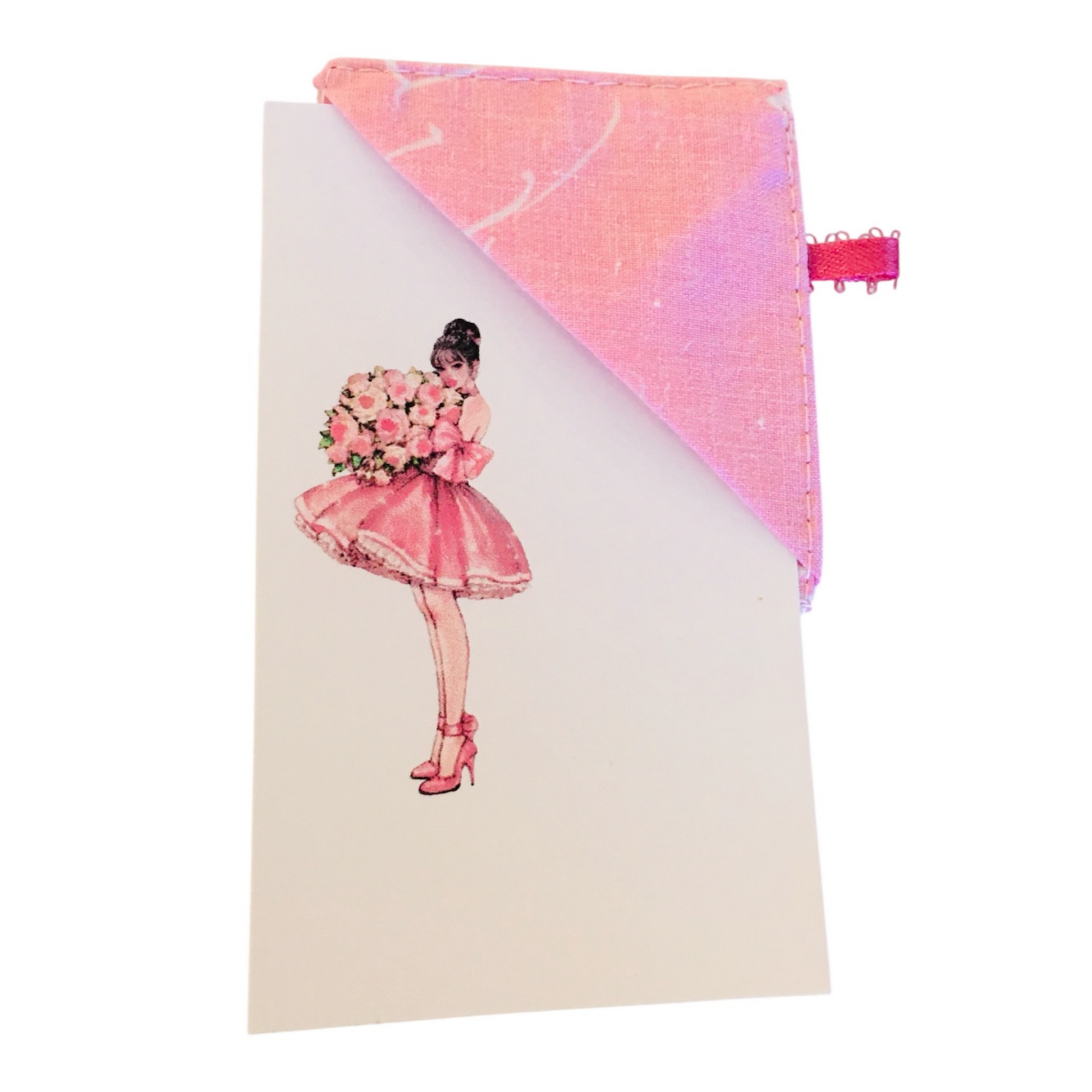 1: reversible book covers: 9/34 x 14 flap 5', exterior pink flowers white design