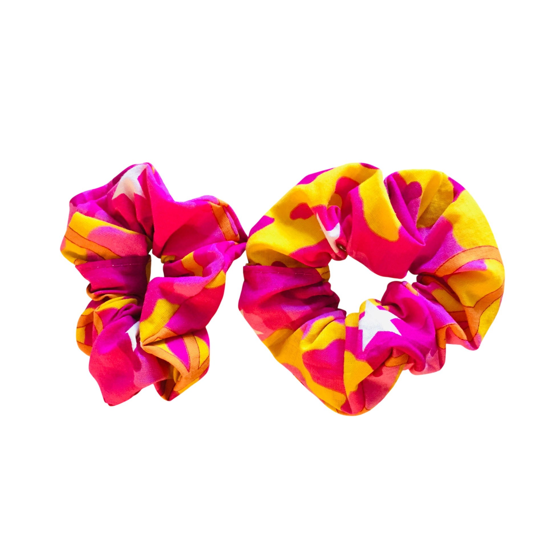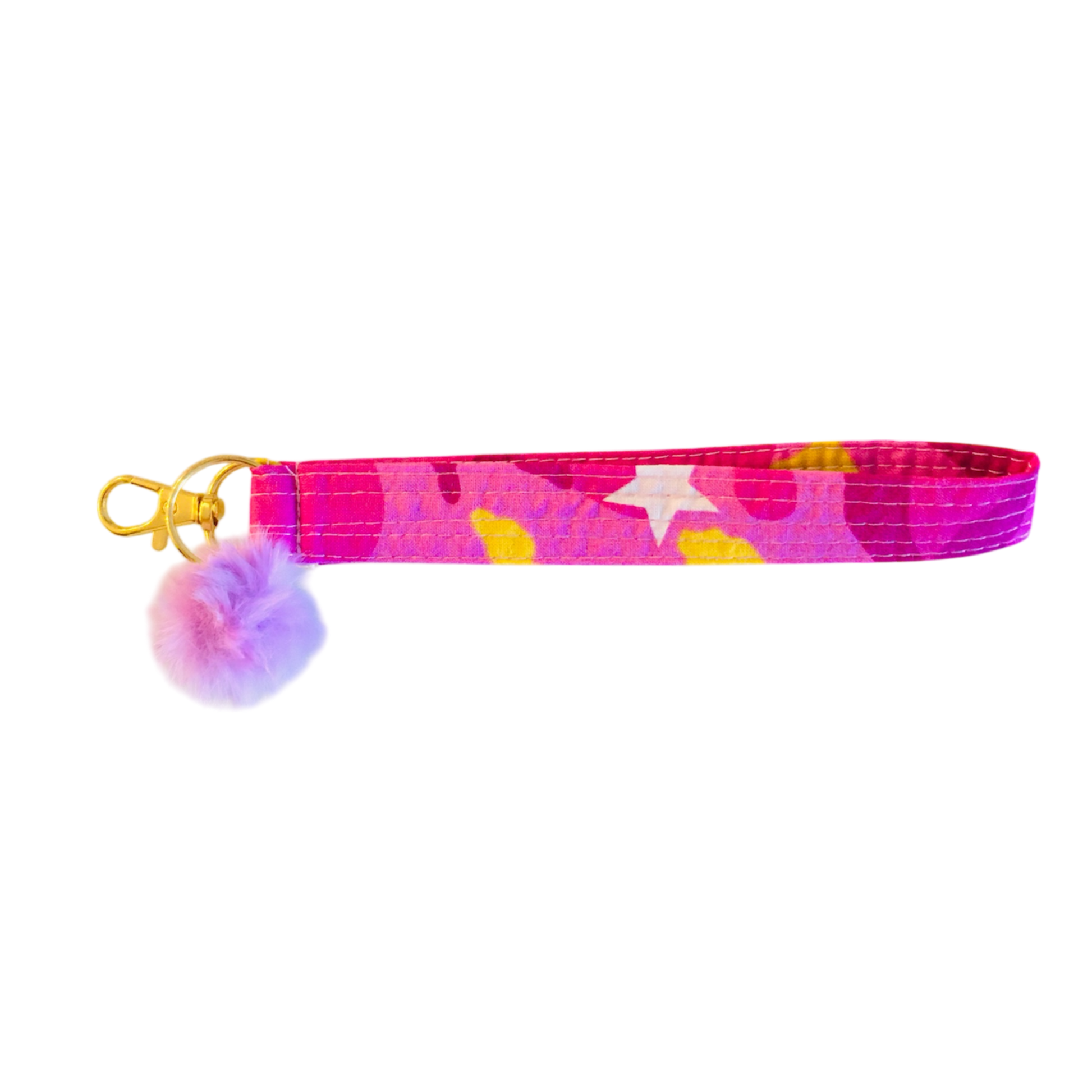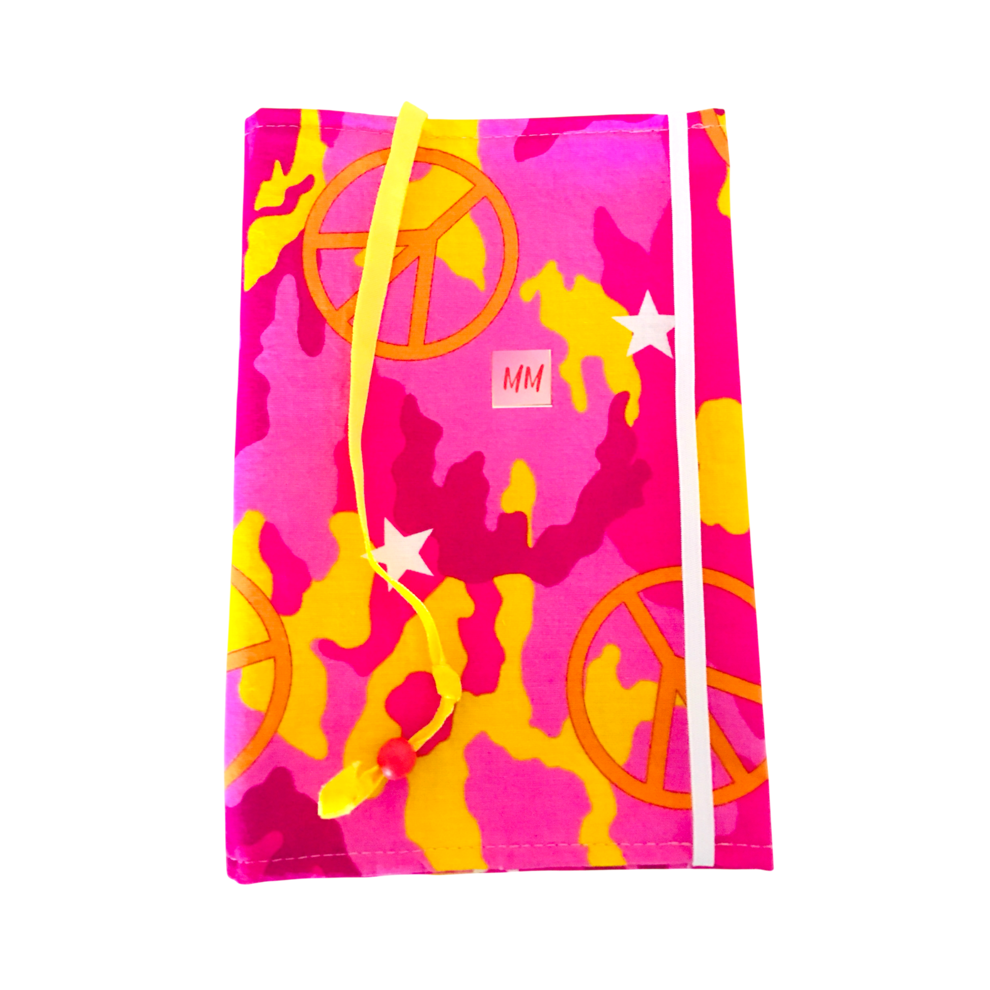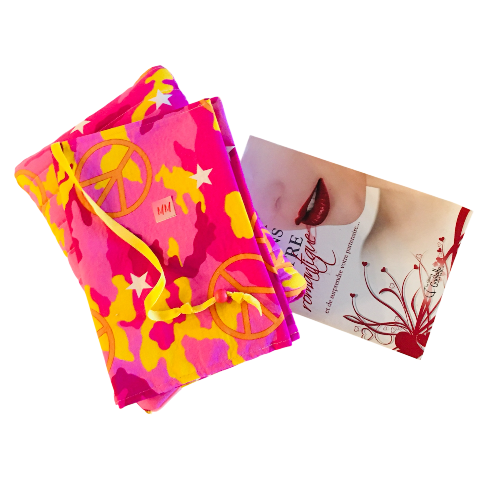 Le coffret Peace and Love aux couleurs rose peppermint, rose framboise, fuchsia et jaune. Munie d'un imprimé style camouflage, rose peppermint avec dessin peace and love de couleur orangé et des imprimer d'étoile blanche. L'intérieur en coton rose gomme, la fermeture éclair rose avec attache jaune, le tout assorti d'une breloque avec des billes argenté, des billes crème et d'un pompon lilas.